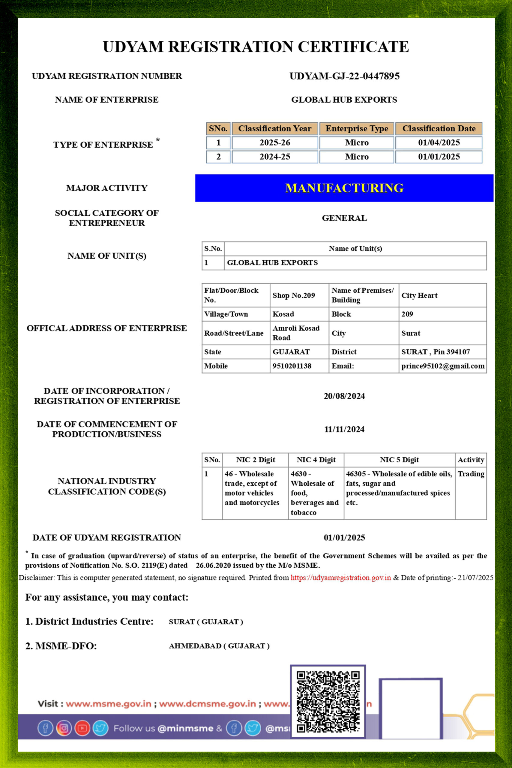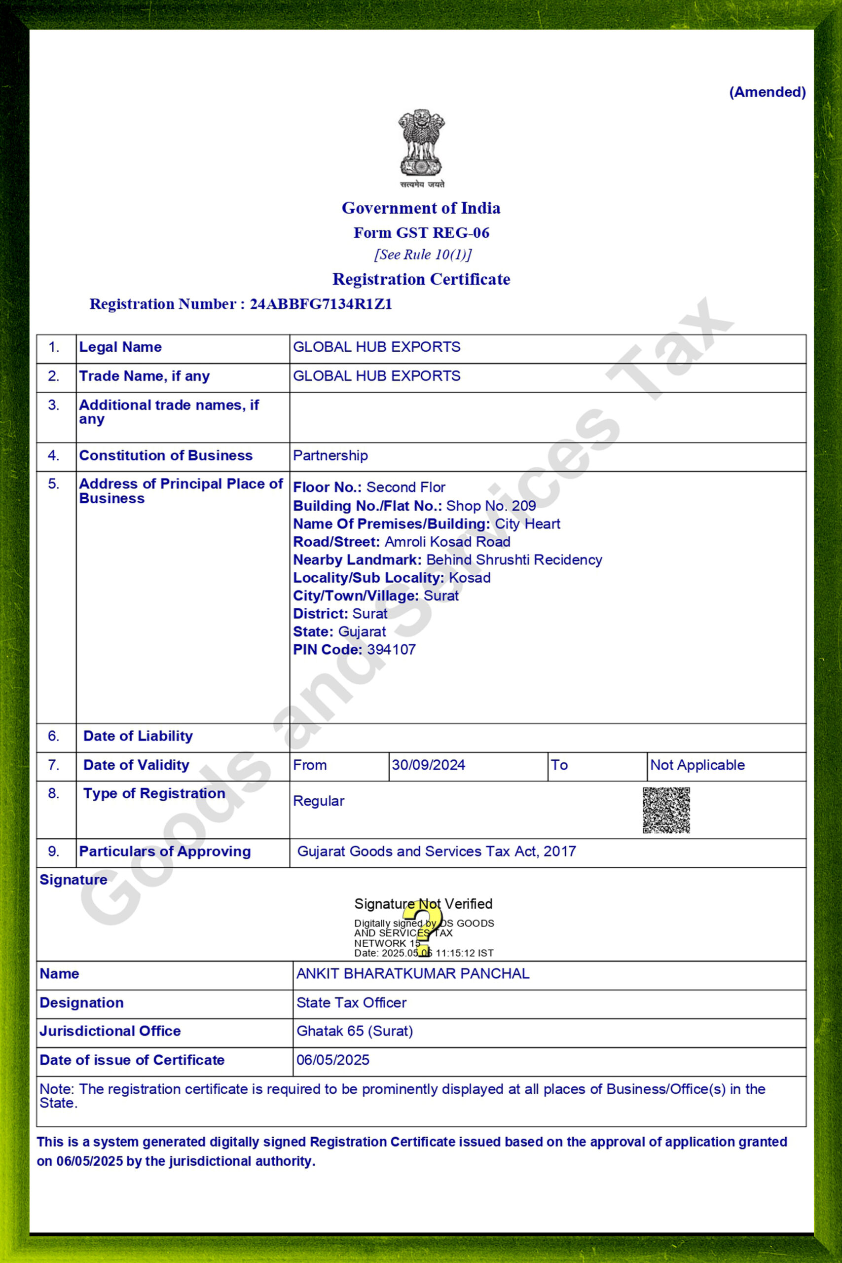 209, 2nd Floor , City Heart , Near Shrushti Row House , Kosad , Amroli , Surat, 394107